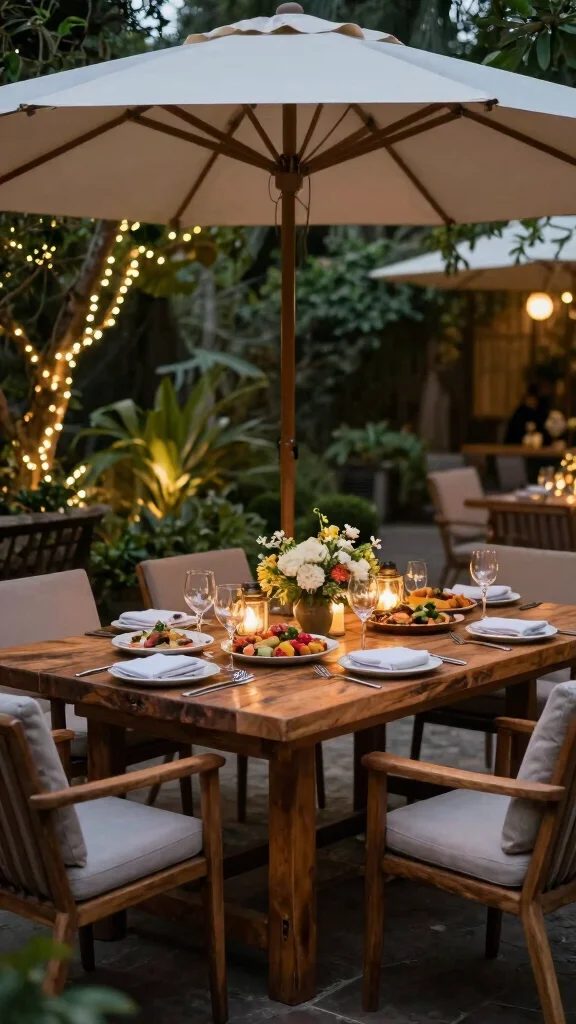 Ready to take your meals outdoors? An inviting al fresco dining setup can turn any meal into a memorable experience. Imagine a sturdy reclaimed wood table surrounded by comfortable chairs, encouraging everyone to linger over desserts and coffee. Adding a large outdoor umbrella or a retractable awning ensures sun protection during the day, making your dining space usable any time.