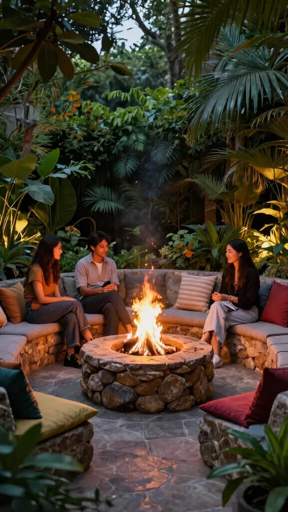 Design your fire pit with natural stone or recycled materials to blend seamlessly with your landscape. Comfortable seating around the fire invites friends and family to share stories and create memories under the stars.