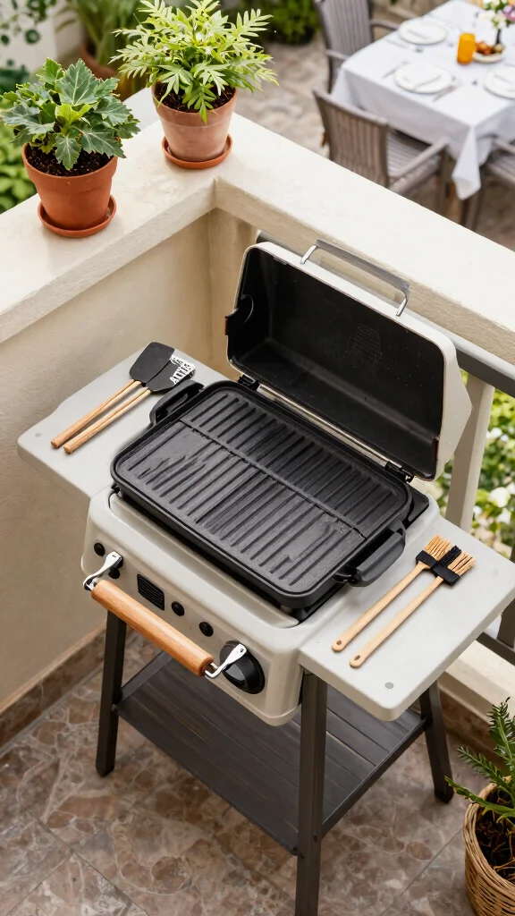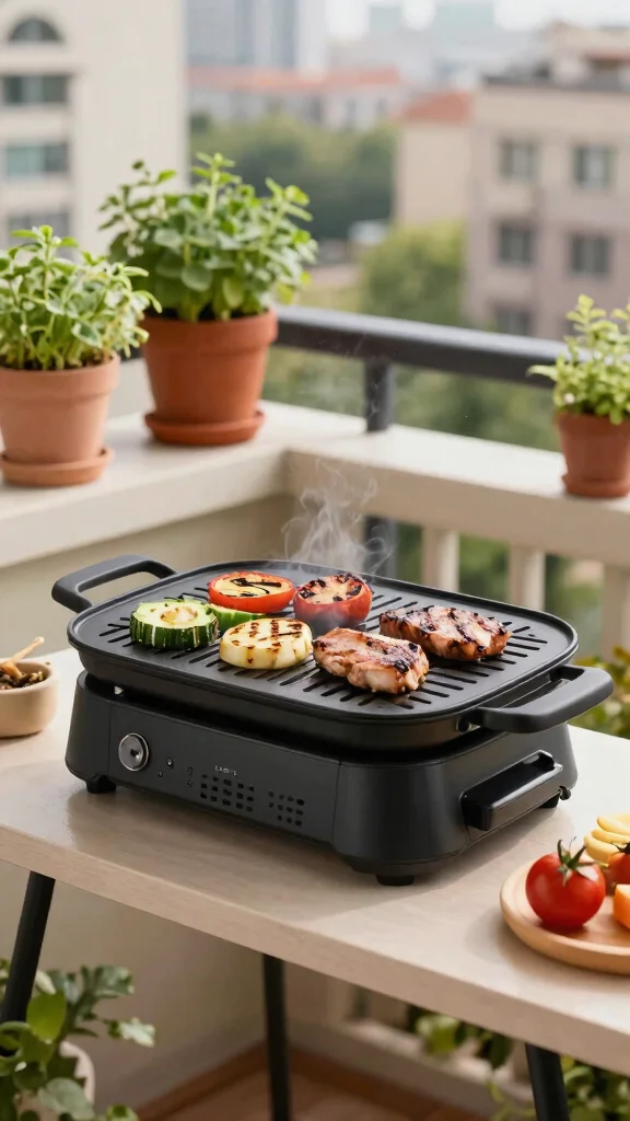 Start with a compact outdoor cooking option like a high-quality electric grill or a small gas grill designed for balconies, which reduces smoke and flare-ups.