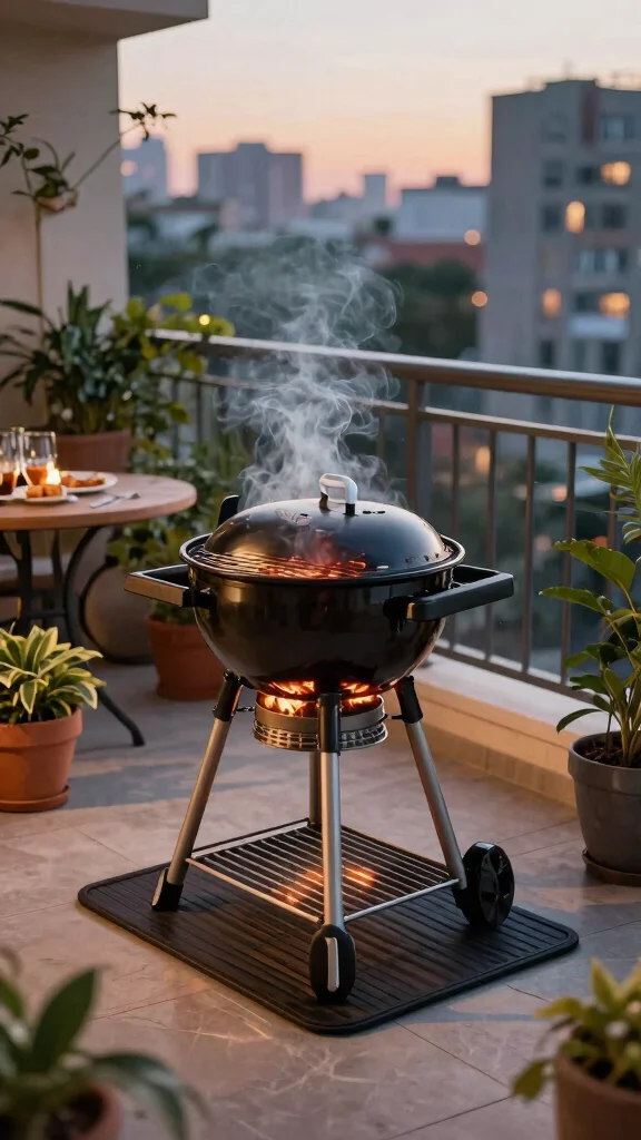 Opt for an electric grill or an induction grill to minimize open flames and smoke, especially if charcoal is restricted by your building.