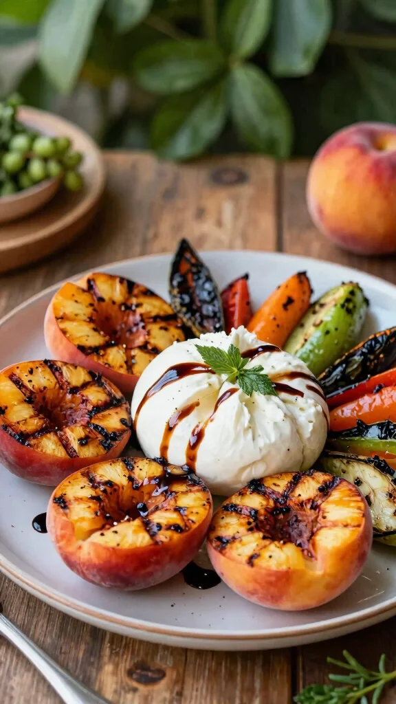 – Grilled peaches with creamy burrata and a balsamic drizzle.
