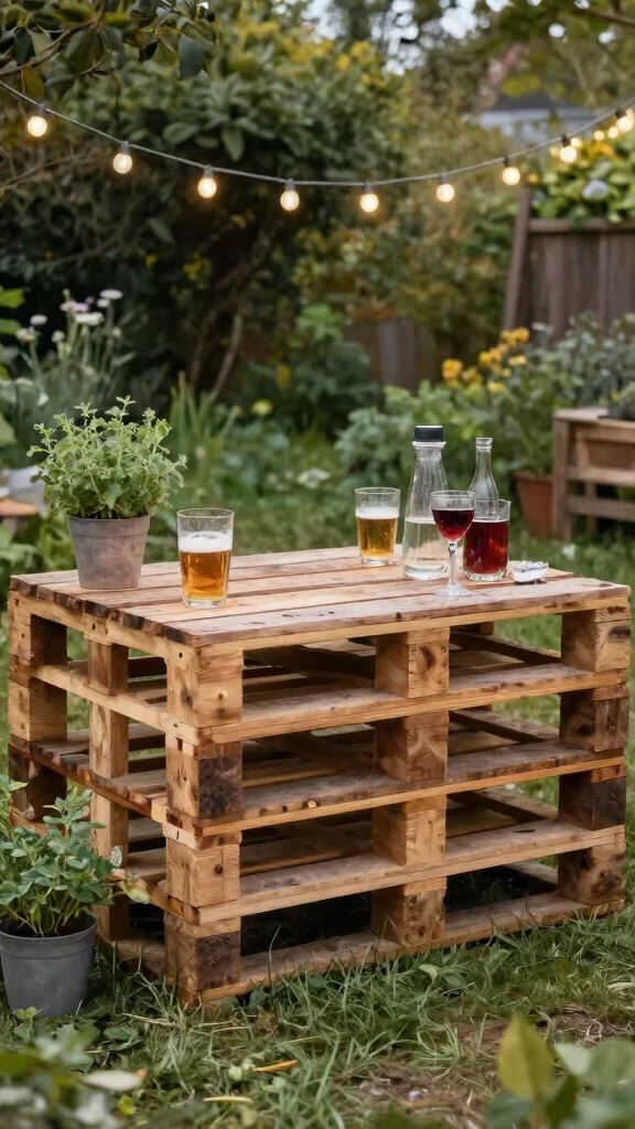 A single pallet can hold drinks, or you can stack several for a tiered effect, incorporating candles or flowers along the edges. This centerpiece is practical and showcases your commitment to sustainable living.