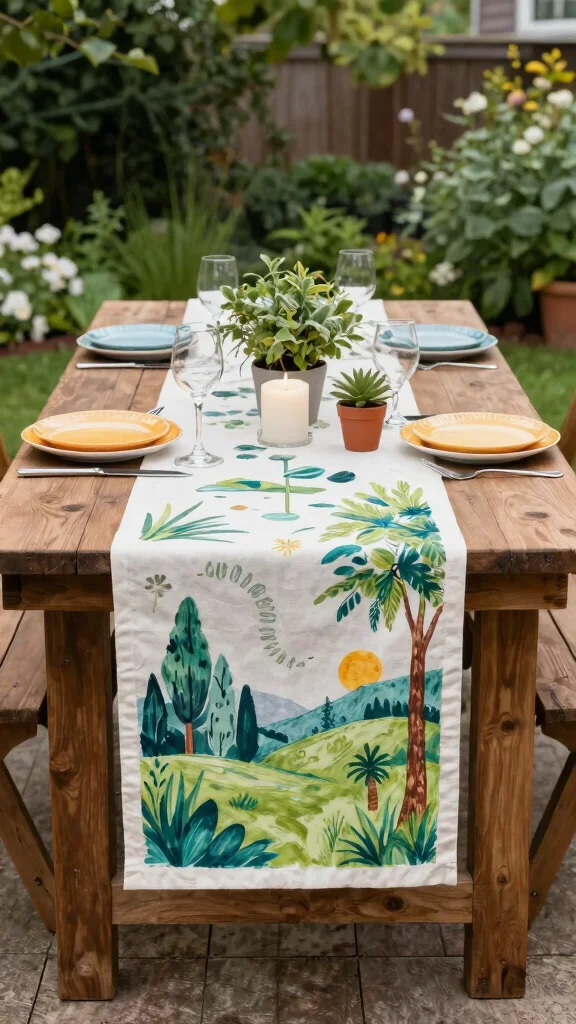 Looking to bring your BBQ table to life? A themed table runner can do just that! Consider a hand-painted runner or one with printed patterns related to gardening or barbeque to add a fun element to your space. Choose eco-friendly fabric options like organic cotton or linen to align with your sustainable decor theme.