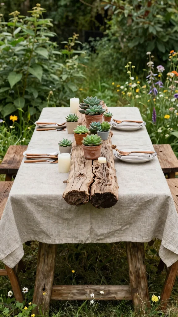 This decoration not only adds character but also enhances your outdoor dining decor. It’s a conversation starter that complements your gardening theme beautifully. Plus, finding driftwood at local beaches or parks is easy!