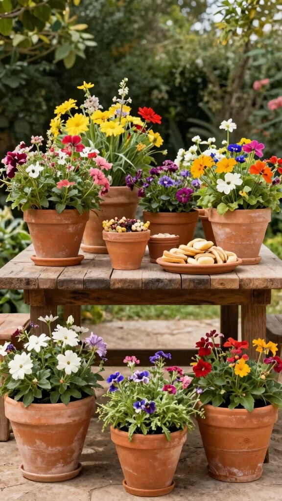 Arranging terracotta pots at different heights creates visual interest and enhances your garden table settings. Plus, these pots can be reused for planting or future gatherings, making them an eco-friendly choice.