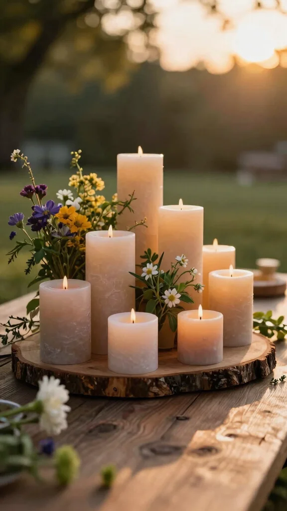 Arrange the candles in varying heights for depth, and surround them with seasonal flowers or herbs for a cohesive look. This centerpiece not only looks great but also sets a relaxing mood for conversations over delicious food!