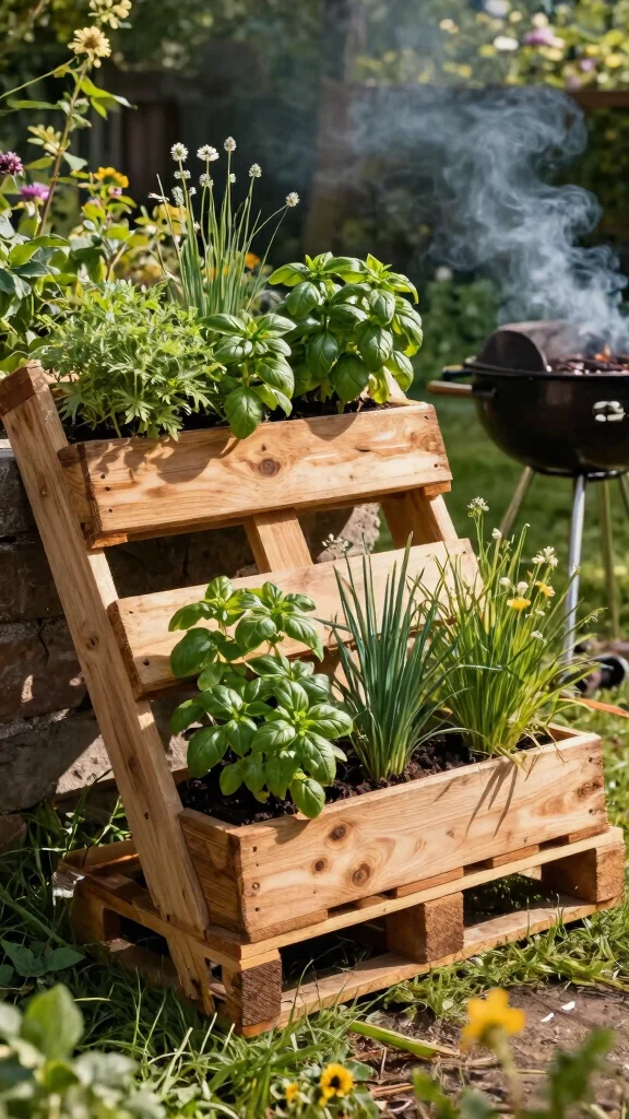 Want a rustic look for your herb garden that’s also eco-friendly? Repurposed wooden pallets can transform into charming herb planters! This creative approach not only saves money but also introduces a unique character to your BBQ area. Simply stand the pallet on its side, fill the gaps with soil, and plant herbs like basil, chives, and sage for an attractive and functional garden.