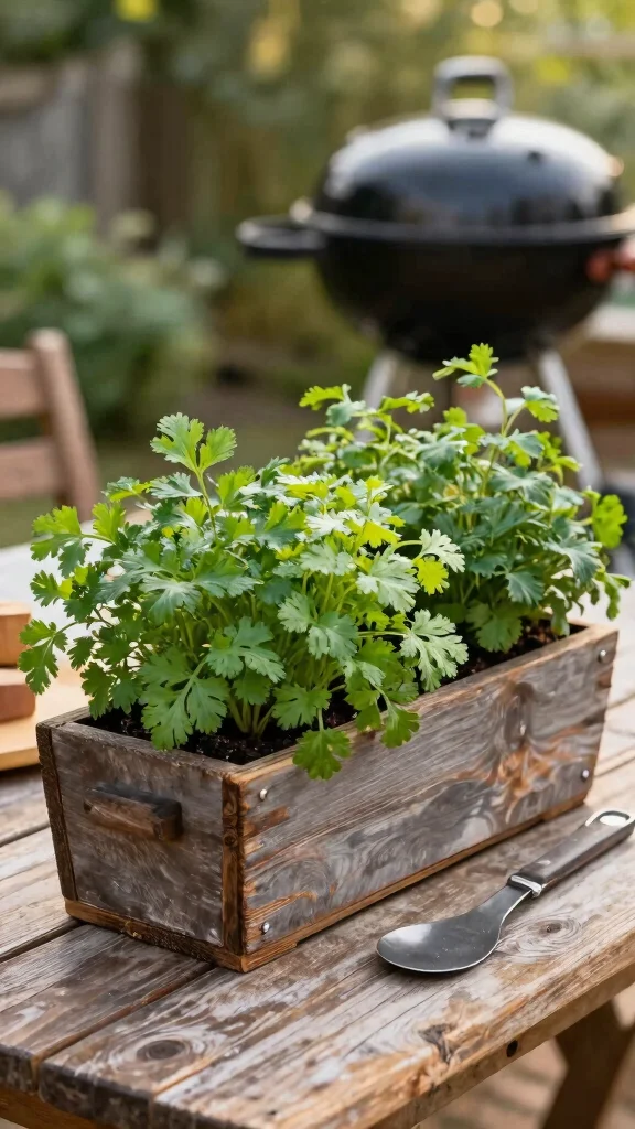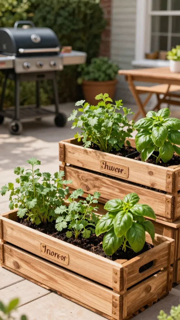 Upgrade your BBQ game with a gourmet herb crate garden! Using wooden crates as planters creates a rustic look while providing plenty of space for various herbs. Label each crate with the herb variety for a fun touch, planting cilantro, basil, and dill to impress your guests with fresh flavors.