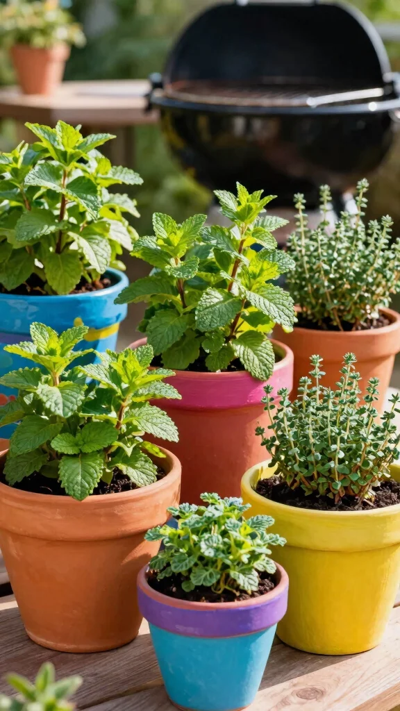 Container gardening is perfect for tight spaces near the grill.