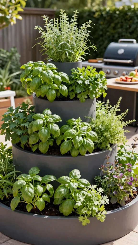 Elevate your BBQ area with tiered garden planters! These multi-level planters allow for a variety of herbs to flourish in a compact space. Arrange different herbs in each tier for both visual diversity and easy access during grilling. This design adds a stylish touch while maximizing sunlight for all your plants.