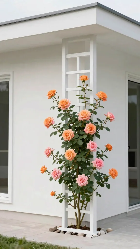 Opt for a minimalist trellis design to maintain a clean look while still showcasing climbing roses beautifully.