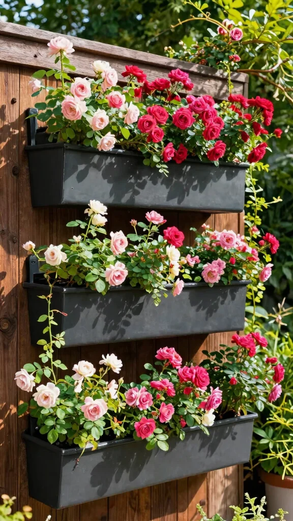 Why not elevate your gardening experience with vertical planter boxes for climbing roses? This setup allows you to maximize your space while showcasing these stunning blooms. Mount the boxes against a wall or fence to create an eye-catching vertical garden.