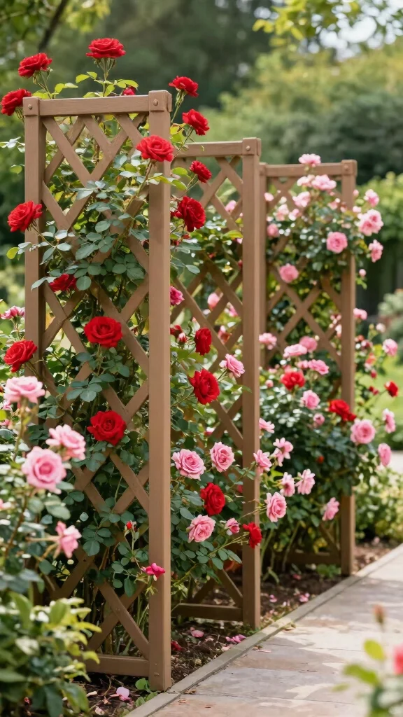 Freestanding trellis panels are a versatile addition to your garden design! They can serve as dividers, borders, or backdrops, allowing climbing roses to stand out beautifully. These panels give you the flexibility to arrange them in various ways for a stunning visual effect.