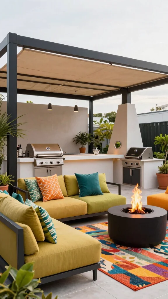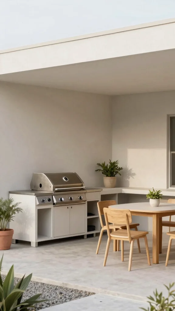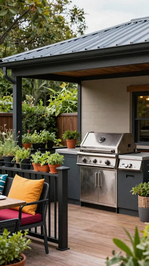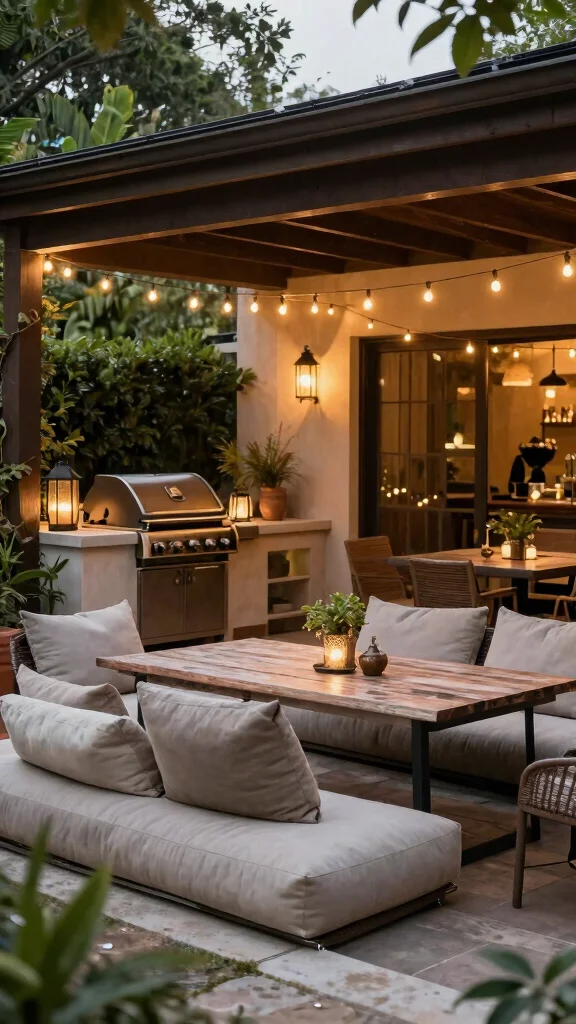 Design a grill station that beautifully blends with your dining setup, using complementary materials for cohesion. A stylish dining table can accommodate family and friends, making it the perfect spot for entertaining. Enhance the atmosphere with string lights or lanterns to provide a warm glow, encouraging long evenings spent with loved ones. Adding a few well-placed potted plants ensures the space feels alive and inviting.