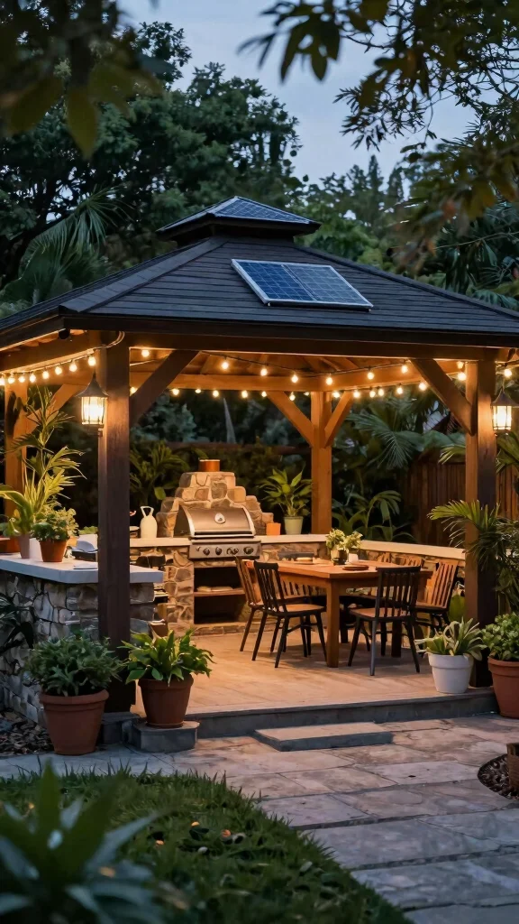Fun fact: a gazebo with a covered roof can boost year-round outdoor cooking by up to 40%, turning rain or shine into cozy weekend gatherings. Pair it with durable, recycled plastic furniture and a built-in grill for an eco-friendly covered bbq area ideas outdoor.
