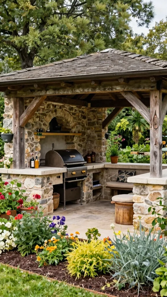 Looking to blend your outdoor cooking area into nature? A rustic stone pavilion is the perfect solution, offering ample protection while enhancing the beauty of your surroundings. Using locally sourced stone not only supports artisans but also creates a stunning focal point for your BBQ setup.