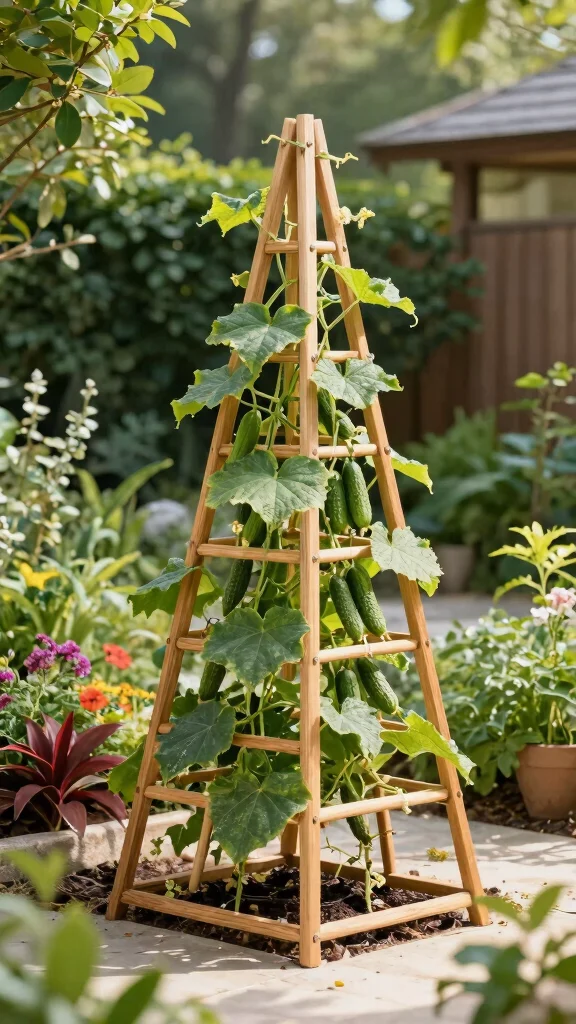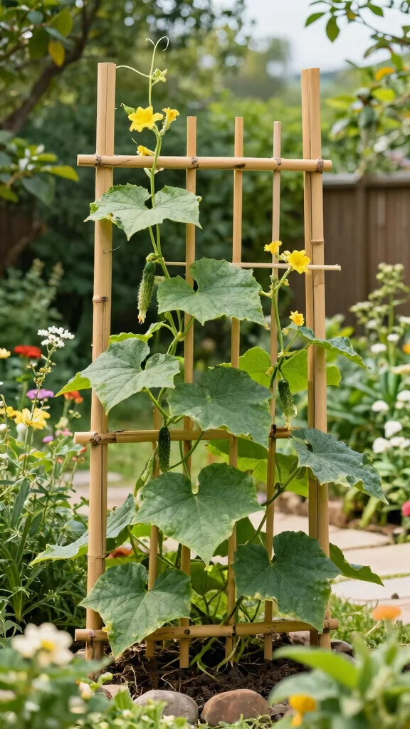 Harvesting Tip: Bamboo trellises create a stunning visual backdrop for your cucumbers, enhancing your garden’s beauty.