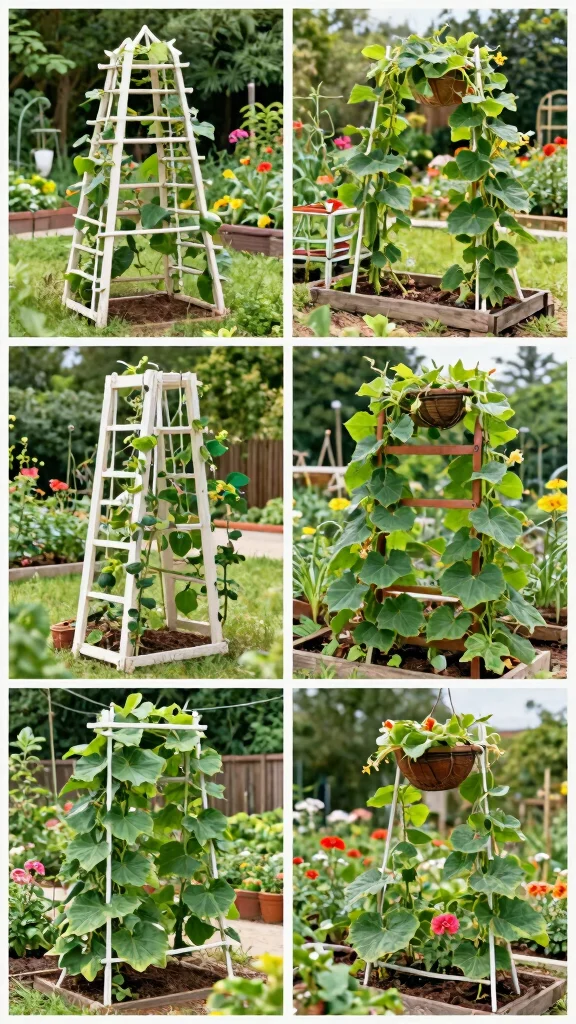 What are the best cucumber trellis ideas for saving space in a small garden?