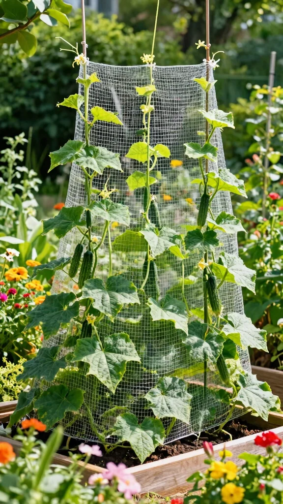 3. Use twine or wire to create a grid for cucumbers to climb.