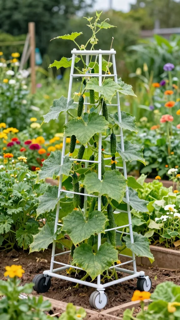 This stylish trellis not only supports your cucumbers but also adds a sleek element to your gardening area.