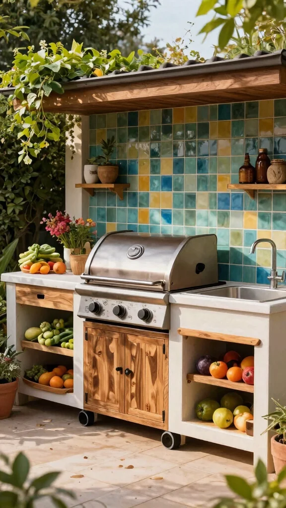 “Did you know a compact vertical herb garden can grow 6–8 herbs in a 2×4 ft wall? Pair it with a simple drip system and a rustic prep table, and your dream outdoor kitchen becomes a scent-filled, sustainable centerpiece.”