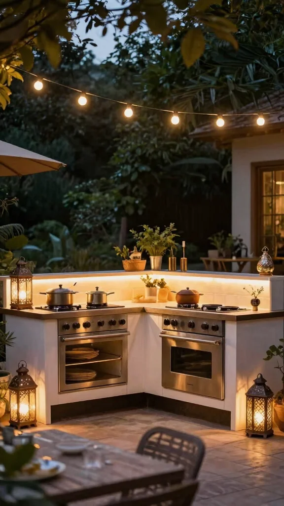 The right lighting can set the perfect mood for your outdoor kitchen. Think about mixing task lighting, ambient fixtures, and decorative elements to create a warm environment. String lights overhead can add a whimsical feel, while lanterns or pathway lights illuminate the way for evening gatherings.