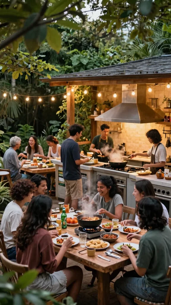 Think comfort and flow. Create seating clusters around a central prep island to encourage conversation while you cook, transforming the area into a true outdoor entertaining space. Add shade with a pergola or retractable canopy, warm weatherproof lighting, and durable, easy-clean surfaces to keep the vibe relaxed. Include a dedicated waste and recycling station and a simple dishwashing/cleanup area so cooking in the garden feels seamless. Finally, plant fragrant herbs and pest-repelling flowers to enhance the experience without chemicals.
