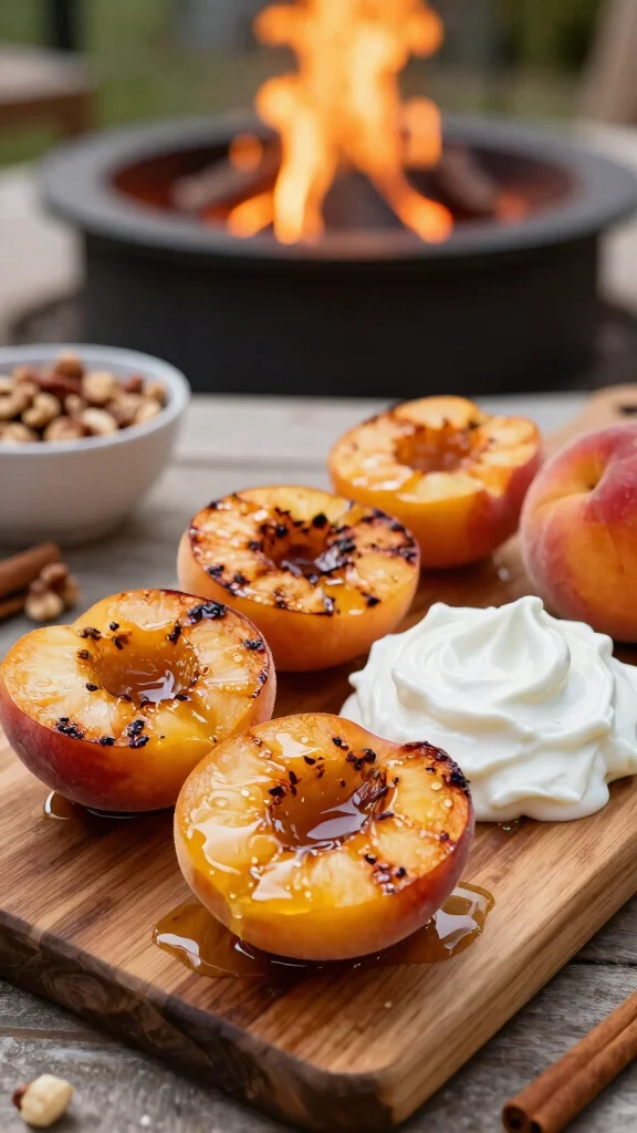For a sweet finale to your fire pit feast, indulge in grilled peaches drizzled with honey and served with creamy yogurt. This dessert is quick to prepare and highlights the natural sweetness of peaches, complemented by a smoky flavor from the fire.