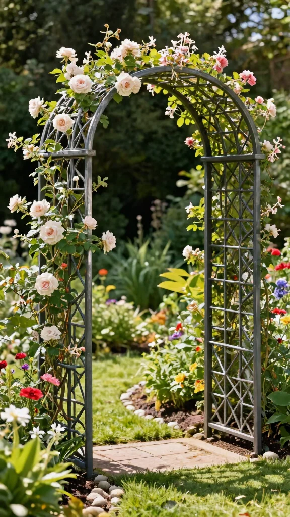 Transform your garden entrance with an elegant metal arch trellis that stands out. This striking structure not only supports climbing plants but also adds a sophisticated focal point to your outdoor area. With various shapes and finishes available, metal trellises can withstand the elements while drawing the eye upward, making your garden appear more expansive.