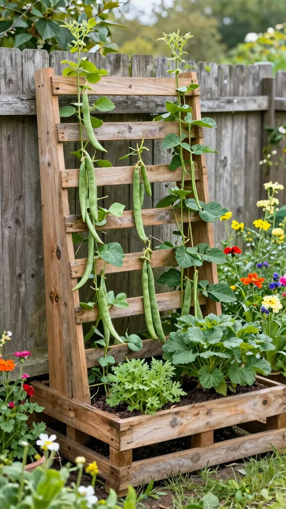 Simply secure the pallet vertically or at an angle against a wall or fence, letting the beans climb through the slats. You can paint or stain the pallet to match your garden or keep it rustic for a farmhouse feel. Pairing it with other plants creates an enticing layered look.