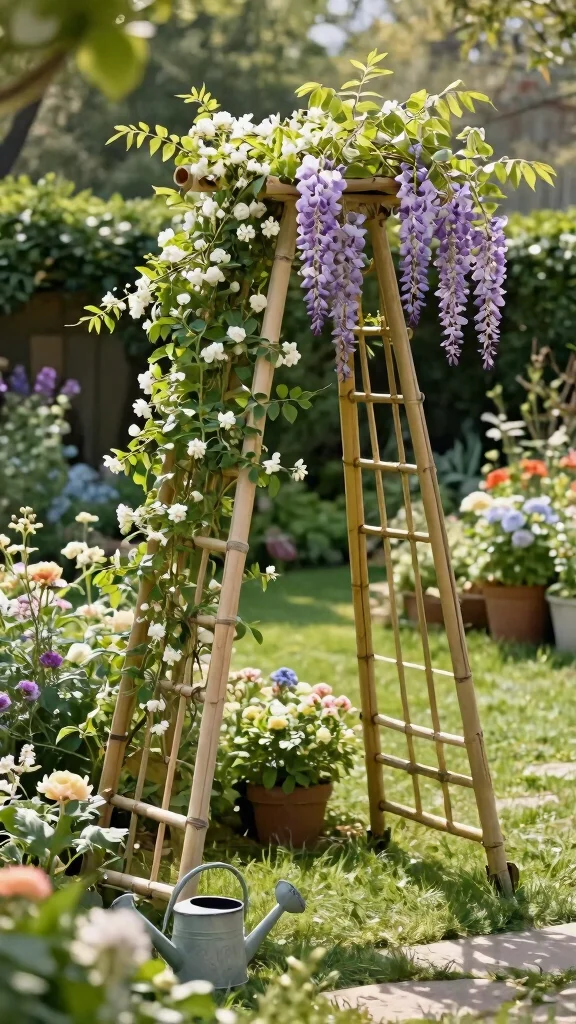 Bamboo sticks offer a lightweight yet sturdy option for creating trellises. You can design simple A-frame structures or stylish crisscross patterns to add a modern flair to your garden. This eco-friendly material is not only sustainable but also incredibly versatile.