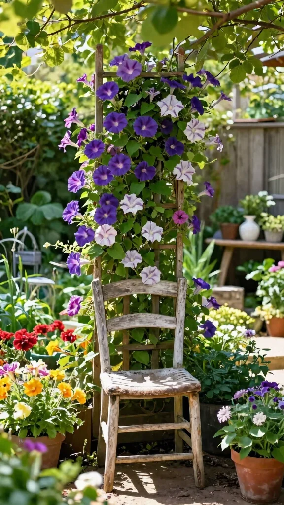 Got an old piece of furniture that’s lost its charm? Repurpose it into a quirky trellis! Chairs, dressers, or even bookshelves can add unique character to your garden while supporting your climbing plants.