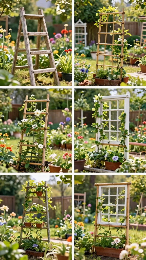 Here are a few beginner-friendly homemade trellis ideas you can try today: an old wooden ladder propped against a wall with twine between the rungs makes a quick vertical climbing support; repurpose a window screen, picture frame, or pallet slats into a lightweight wall trellis; a simple PVC pipe frame with mesh creates a sturdy space for vines. You can also stretch chicken wire or hardware cloth over a wooden grid to handle heavier climbers. A repurposed door or garden gate can become a dramatic, wide trellis for sprawling plants. These options fit into DIY garden projects and repurposed materials for gardening, and they offer flexible garden trellis designs and effective vertical gardening solutions.