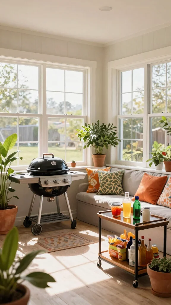 – Family-Friendly Indoor BBQ Area: Create a space that accommodates everyone. Use comfortable seating and a removable grill that can be set up for family gatherings.