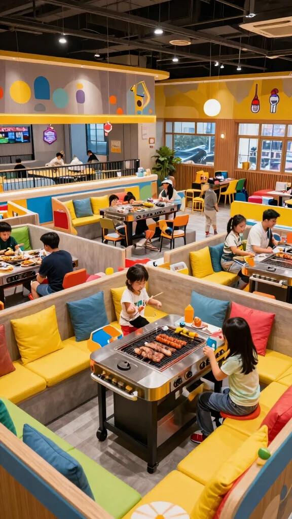 Mix seating options, from high chairs to cozy benches, making it ideal for families of all sizes. Bright decor and fun themes can make the space lively and engaging. A designated play area for kids while adults grill can enhance the experience, ensuring everyone has a great time together.