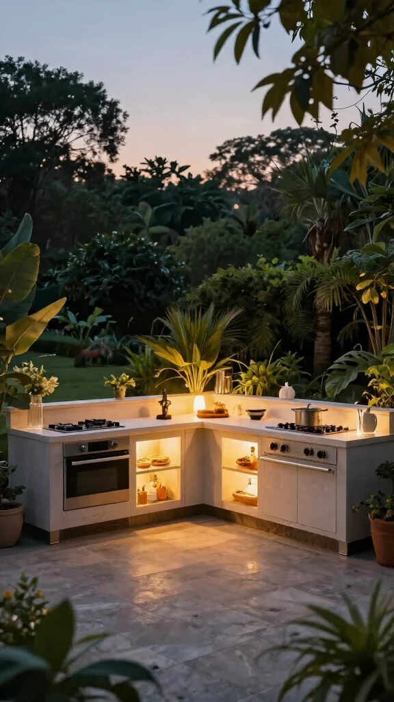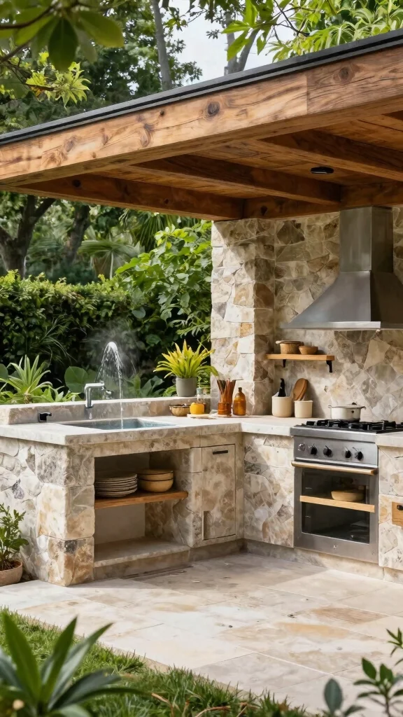 These elements not only enhance your kitchen’s aesthetics but also create a peaceful environment, making outdoor cooking a true joy.