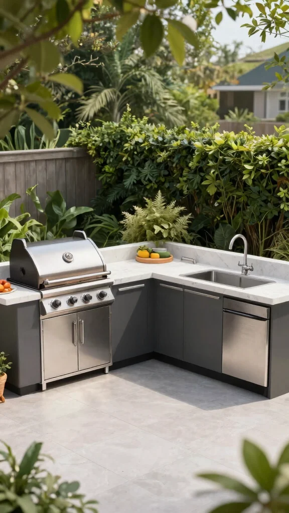 With thoughtful placement, your l shape outdoor kitchen ideas blend seamlessly with the garden, turning your space into one cohesive outdoor kitchen design and an inviting backyard kitchen idea.