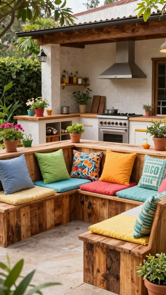 Consider adding a bar-style seating area to one side, allowing guests to chat while you prepare meals. Use eco-friendly cushions to ensure comfort and durability.