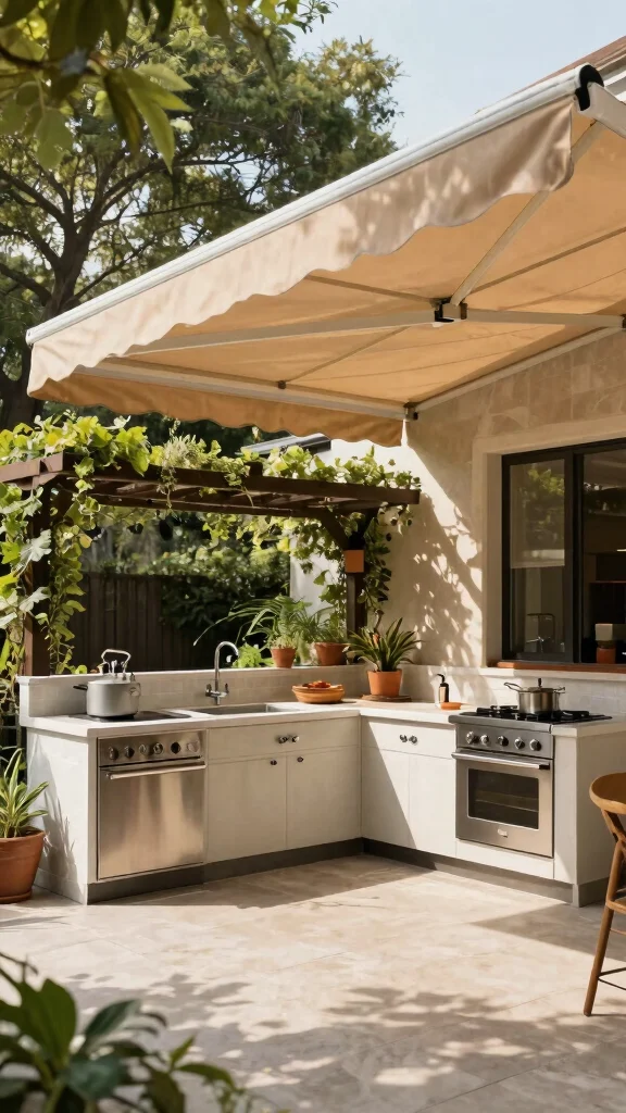 Love cooking outdoors but worried about unpredictable weather? Implementing protection solutions like awnings or pergolas ensures you can enjoy your kitchen year-round.