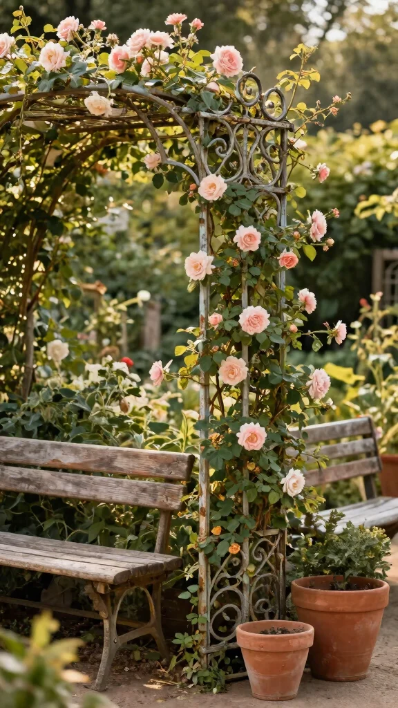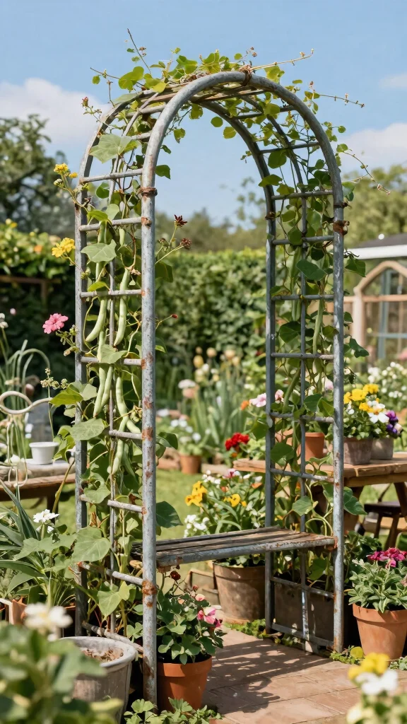Ultimately, a rustic reclaimed metal trellis enriches your garden with depth and character while supporting your climbing plants sustainably.