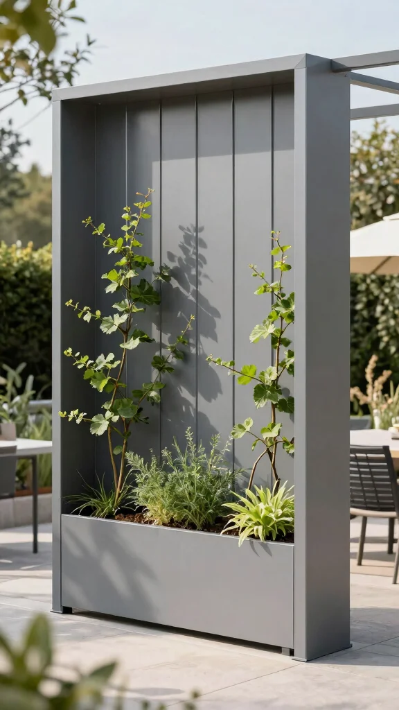 As your plants grow, they will create a natural living wall, softening the space while maintaining a tidy appearance. Use matching metal planters for a cohesive look and ensure the panels are securely anchored to support the weight of your plants.