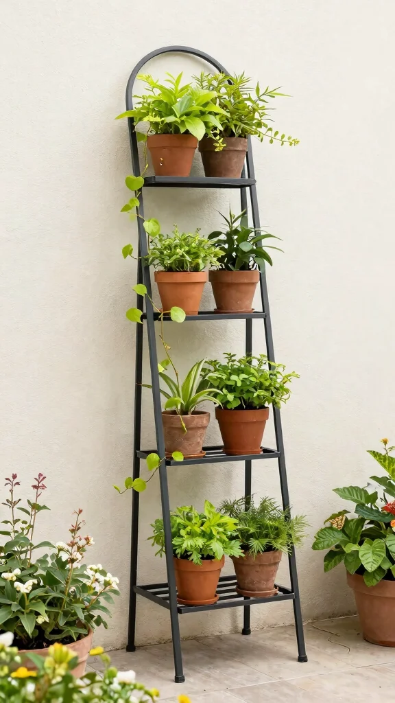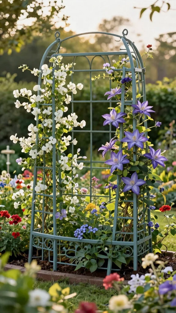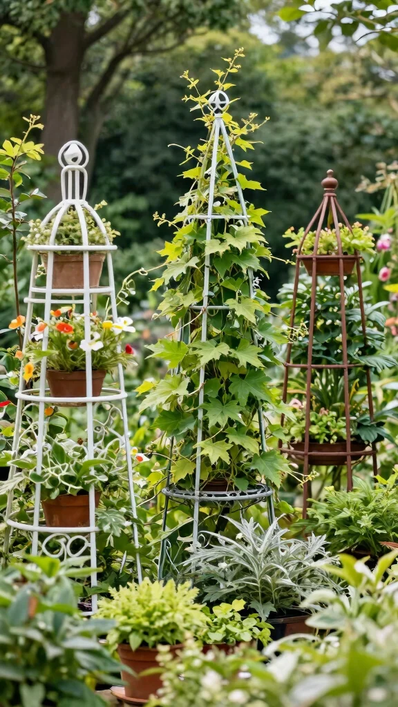 Ultimately, a ladder-style metal trellis provides practical support while enhancing your vertical gardening potential.