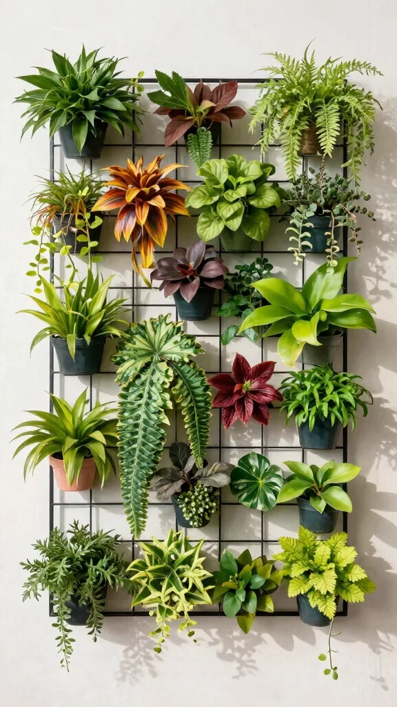 Transform bare walls into living art with wall-mounted metal grids designed for climbing plants. These grids can be tailored to fit any space, offering flexibility and creativity in plant arrangements.
