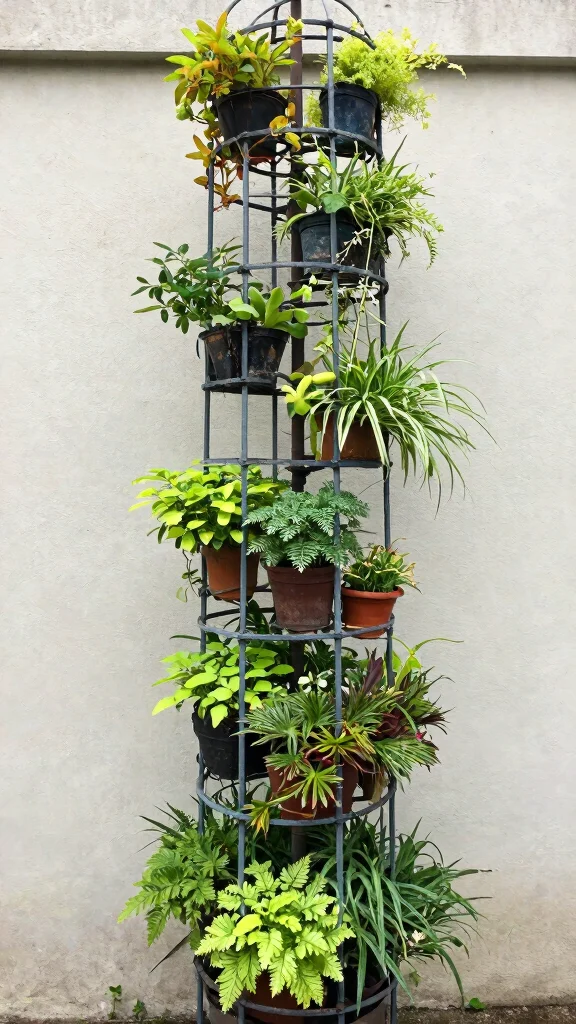 For a truly eye-catching design, consider a vertical spiral trellis. This unique structure adds dimension and interest, allowing your plants to weave around its spirals as they grow skyward. It’s a fantastic solution for urban gardeners looking to maximize limited vertical space.