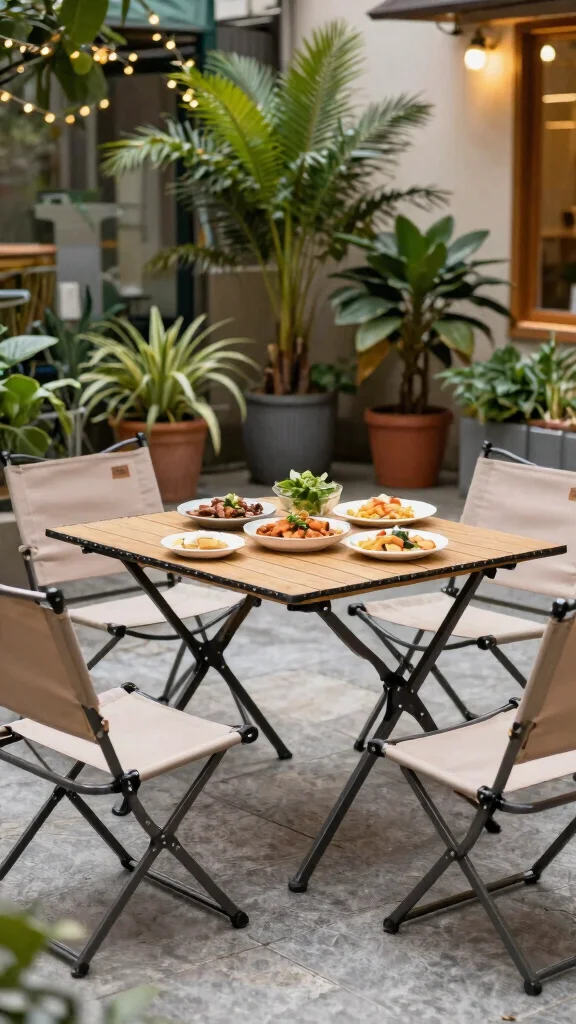 Pair it with foldable chairs to create a cohesive and space-efficient outdoor dining area. This adaptable solution allows you to open up your space when not in use, keeping everything tidy and ready for your next gathering!