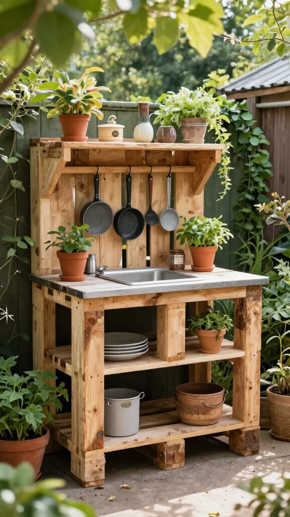 Unleash your creativity with a DIY pallet kitchen! Using reclaimed wood pallets, you can design a rustic yet functional outdoor kitchen without spending a fortune. This setup can include shelves for pots, a small countertop for meal prep, and hooks for utensils—all customized to fit your space perfectly.
