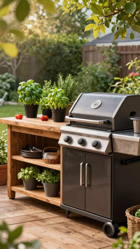 Create a cozy grill station that includes a small herb garden for fresh seasonings right at your fingertips.