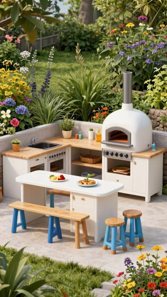 – How do I make my outdoor kitchen kid-friendly? Focus on safety features and engaging elements.