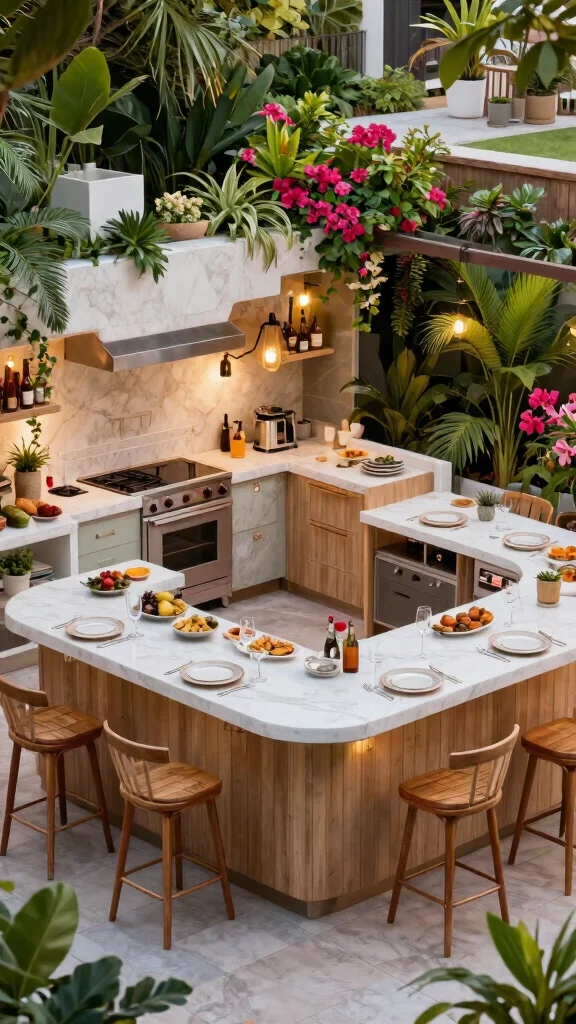 Fun fact: A well-designed outdoor kitchen plans layout with bar seating can boost entertaining time by 30–45%. Keep prep zones near the serving area and include built-in sound or TV to keep guests engaged—your space will feel like an entertainer’s dream.