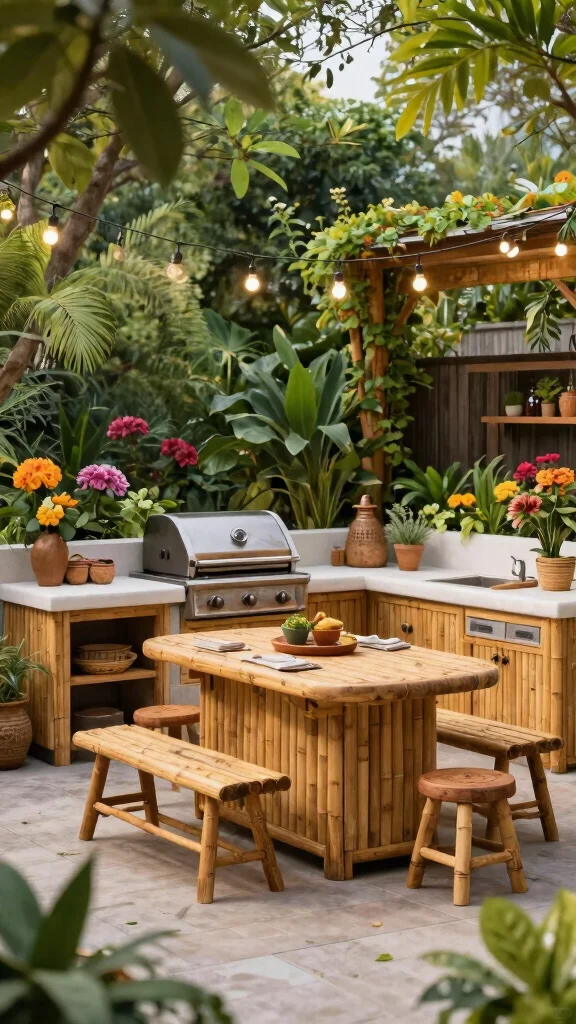 Plan with passive design in mind: orient the cooking area to catch cooling shade, use permeable pavers to manage rain, and choose modular components you can reconfigure as your yard changes.
